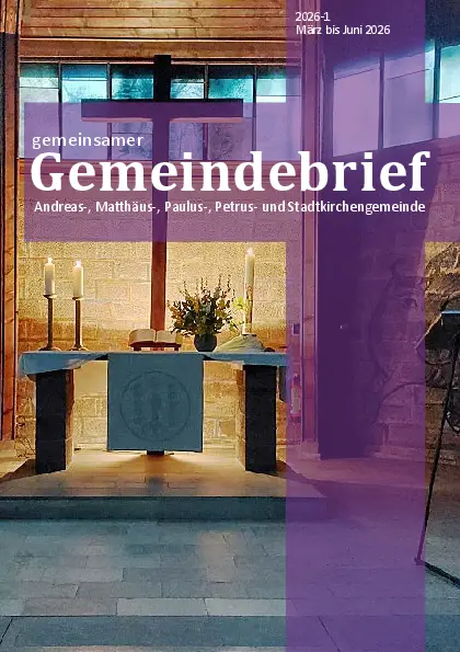 Der neue Gemeindebrief, Ausgabe 2026-1, für den Nachbarschaftsraum City-Süd (Andreas-, Matthäus-, Paulus-, Petrus- und Stadtkirchengemeinde) ist erschienen. Er begleitet Sie durch die Monate März bis Juni 2026 und enthält einen geistlichen Impuls zur Osterzeit, Neuigkeiten aus dem Fusionsprozess sowie zahlreiche Termine aus unseren Gemeinden.